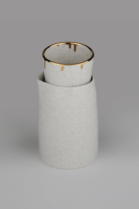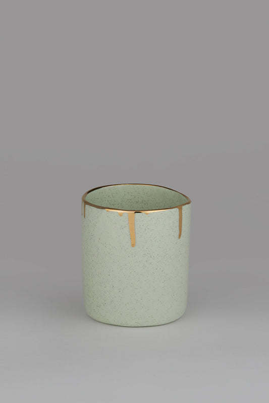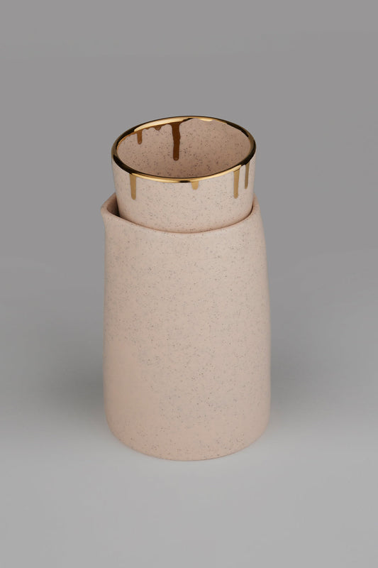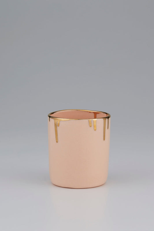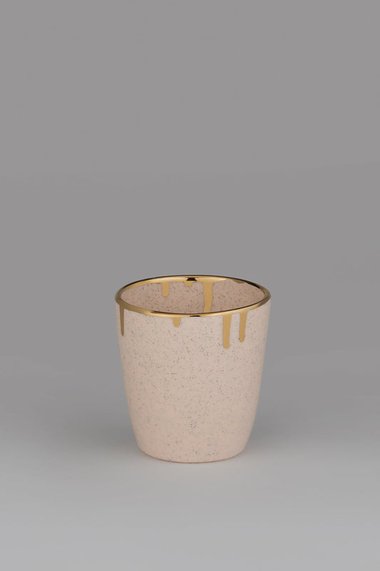 Small Tumbler with Gold Drip Rim Speckled Peach