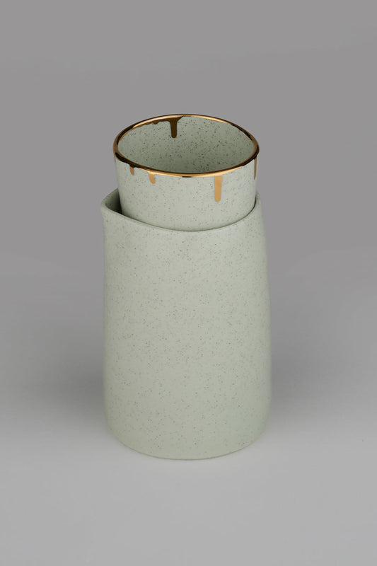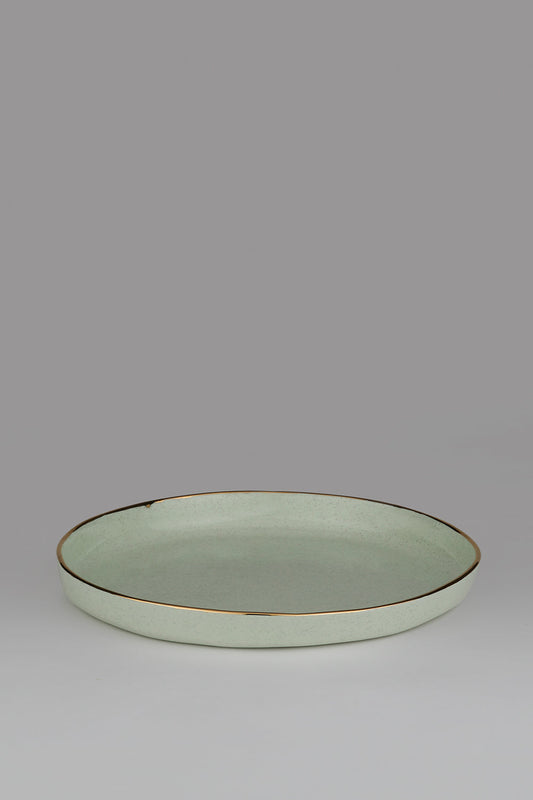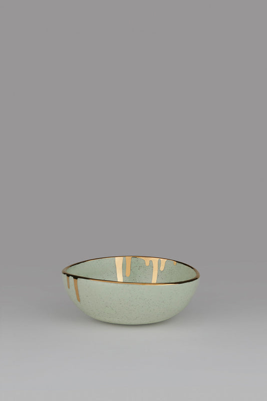 Large Ring Bowl with Gold Drip Rim Speckled Sage