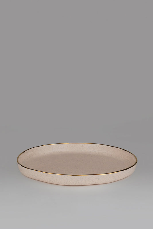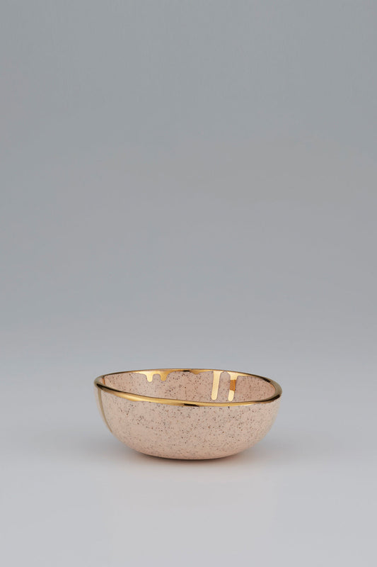Large Ring Bowl with Gold Drip Rim Speckled Peach