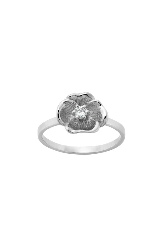 Diamond Etch Pansy Ring, 9ct White Gold, .10ct Diamond