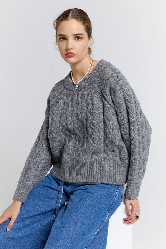 Cable Knit Cropped Sweater Grey Marle