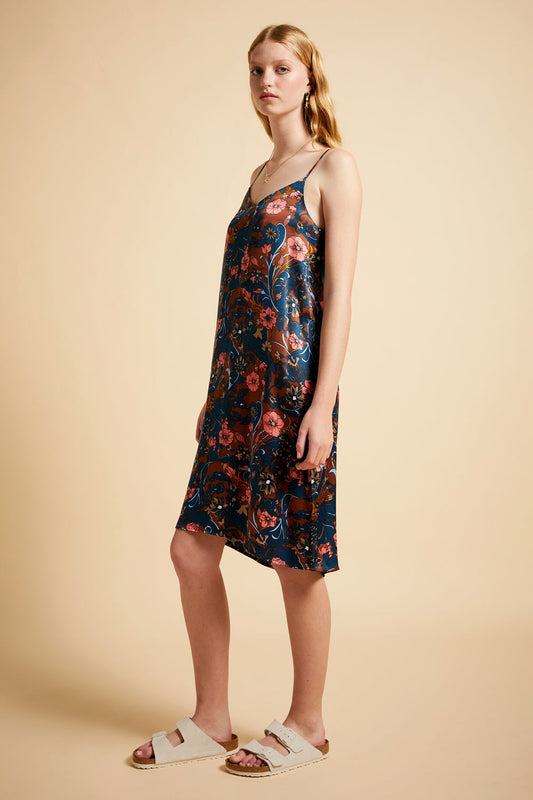 60s Floral Slip Nightie Chocolate