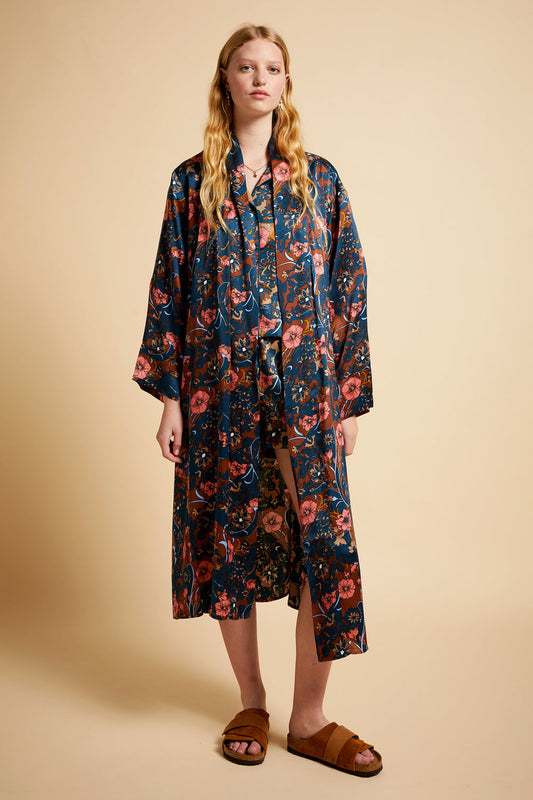 60s Floral Robe Chocolate