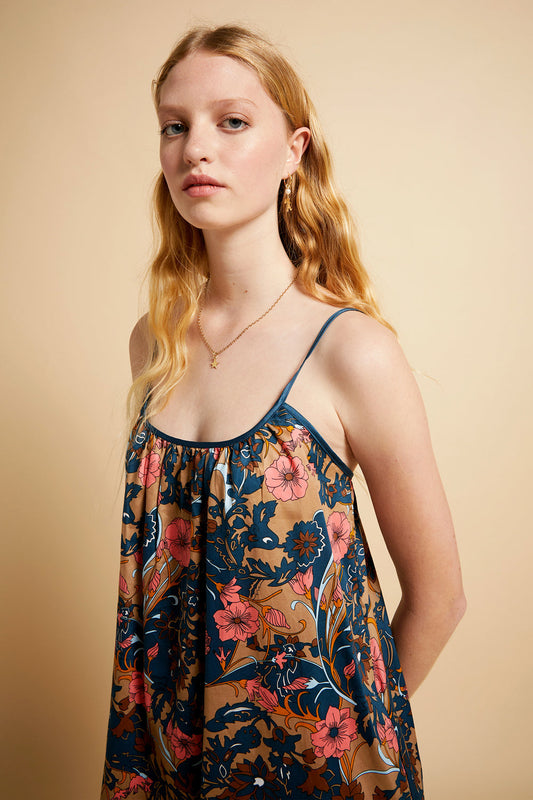 60s Floral Strappy Nightie Warm Taupe