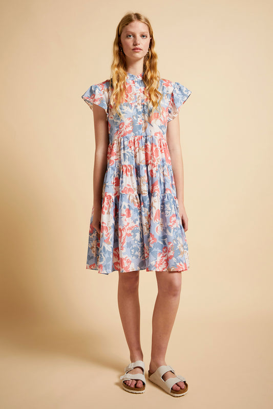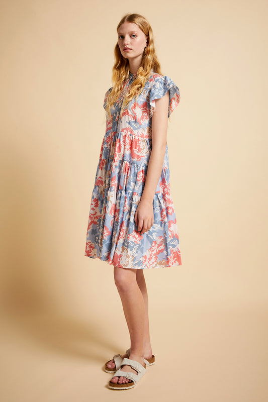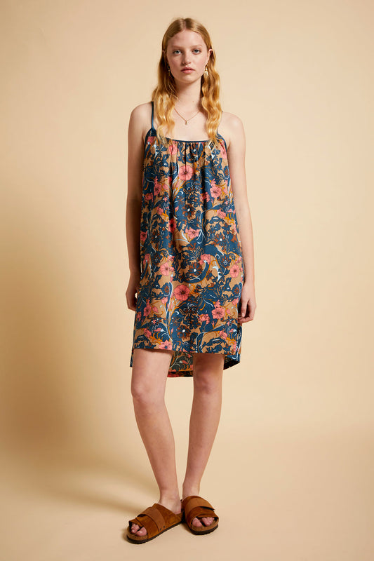 Ornamental Floral Flutter Panel Nightie Cerulean Blue