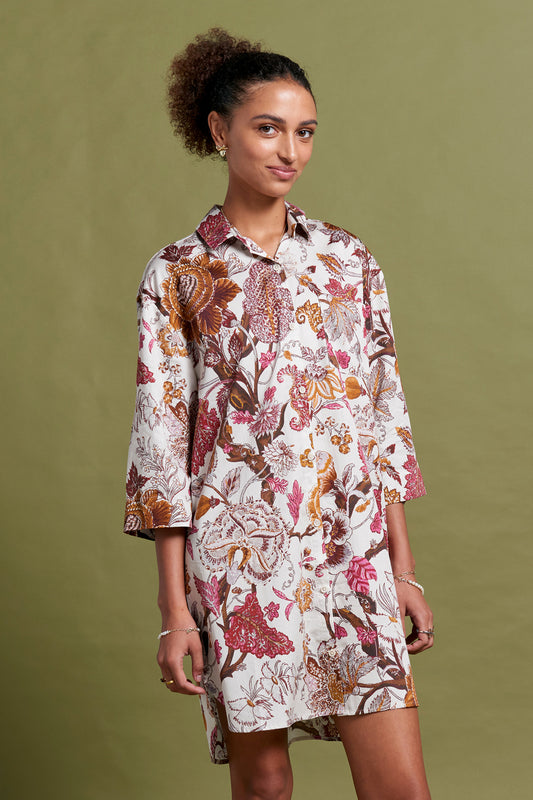 Edwardian Floral Nightshirt Macadamia