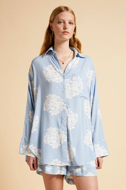 Flower Ball Oversized Shirt Cerulean Blue