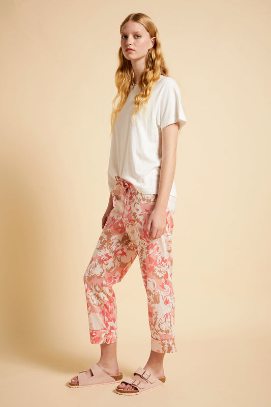 Ornamental Floral Crop Pant Shell Pink