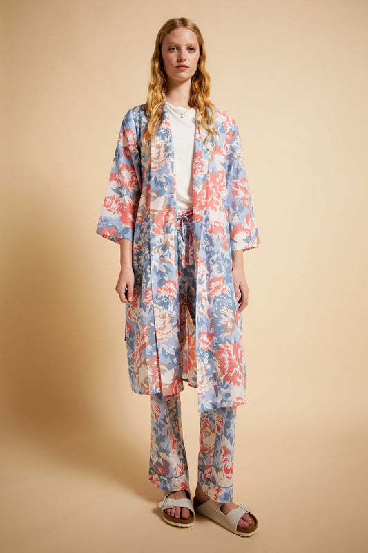 Ornamental Floral Full Length PJ Set Cerulean Blue
