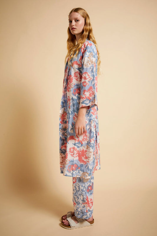 Ornamental Floral Maxi Robe Cerulean Blue