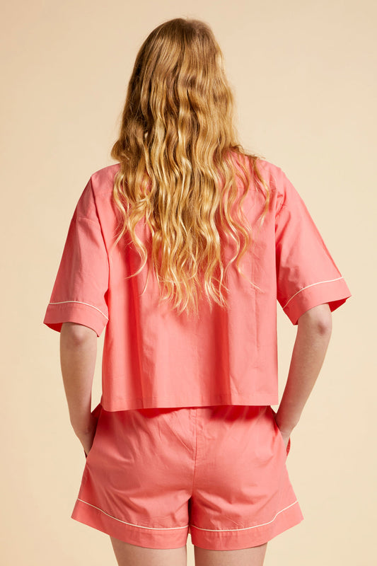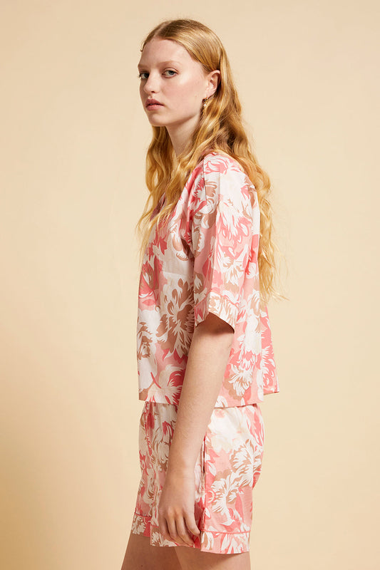 Ornamental Floral Short Sleeve PJ Shirt Shell Pink