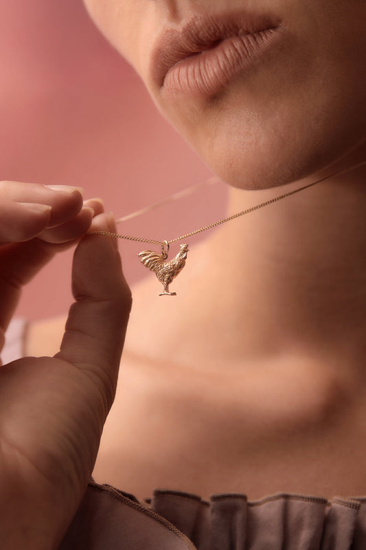 Rooster Necklace Rose Gold