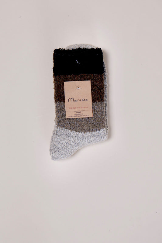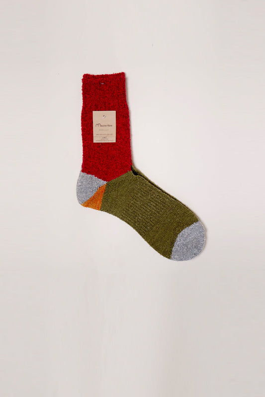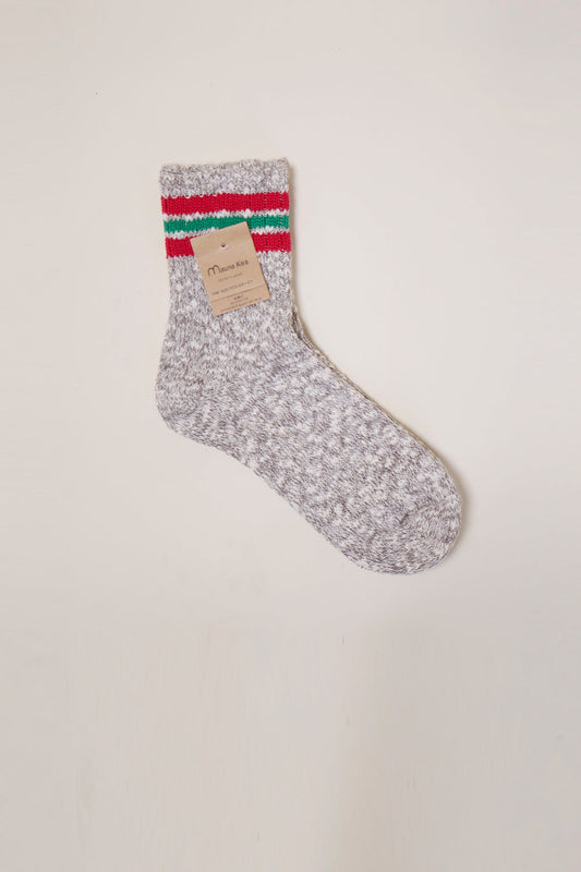 Slub Nep Three Stripe Socks Grey with Red/Green Stripes