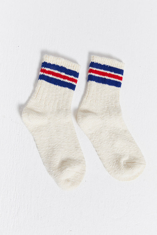 Slub Nep Three Stripe Socks Cream with Navy/Red Stripes