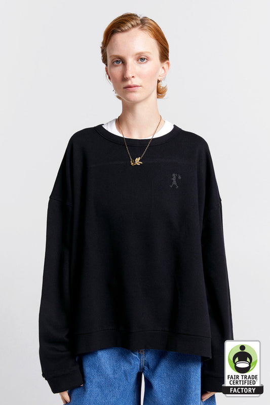 Embroidered Runaway Girl Organic Cotton Crewneck Sweatshirt Black