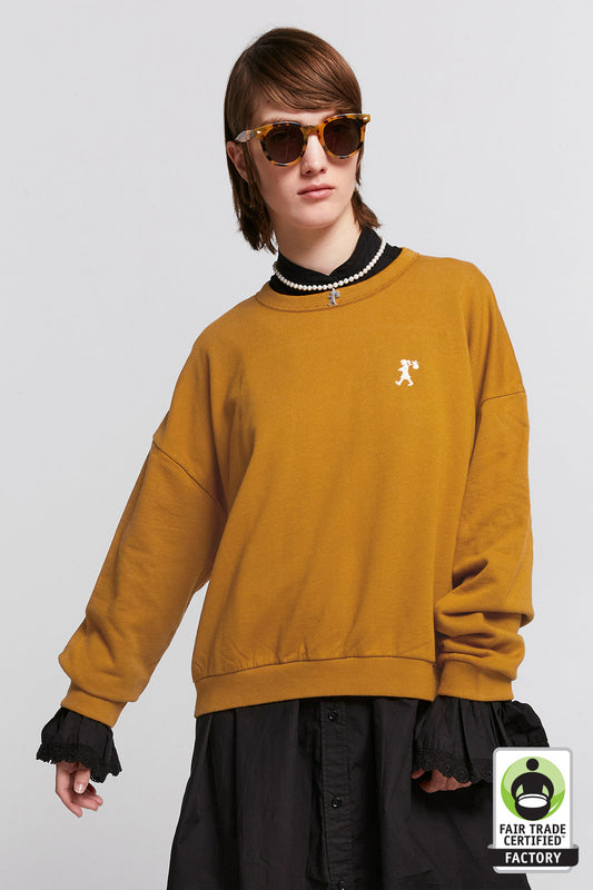 Embroidered Runaway Girl Organic Cotton Crewneck Sweatshirt Dijon