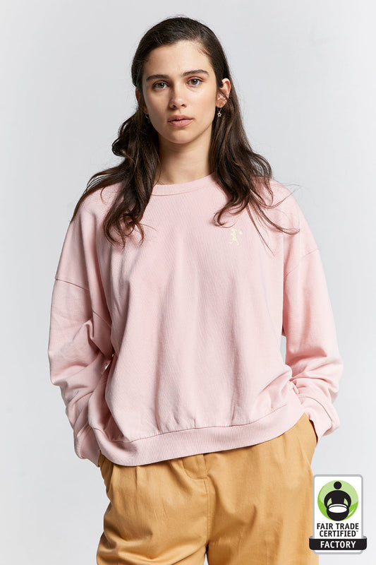 Embroidered Runaway Girl Organic Cotton Crewneck Sweatshirt Dusty Pink