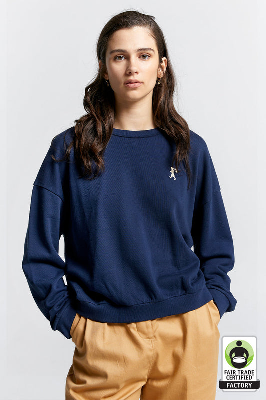 Embroidered Runaway Girl Organic Cotton Crewneck Sweatshirt Navy