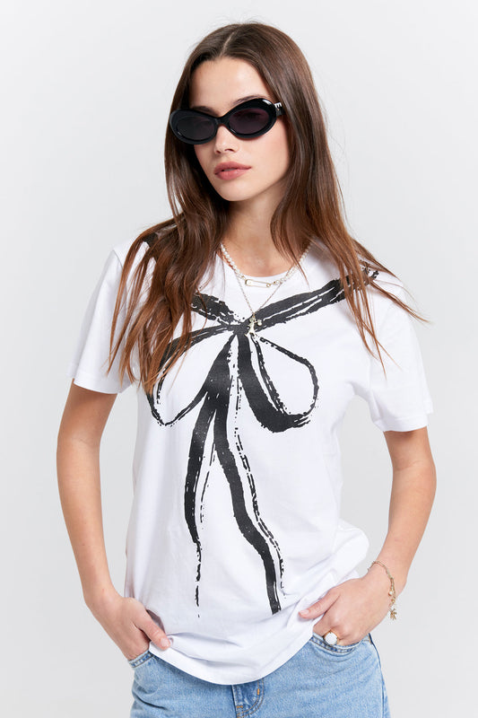 Trompe-L'oeil Bow Organic Cotton T-Shirt White