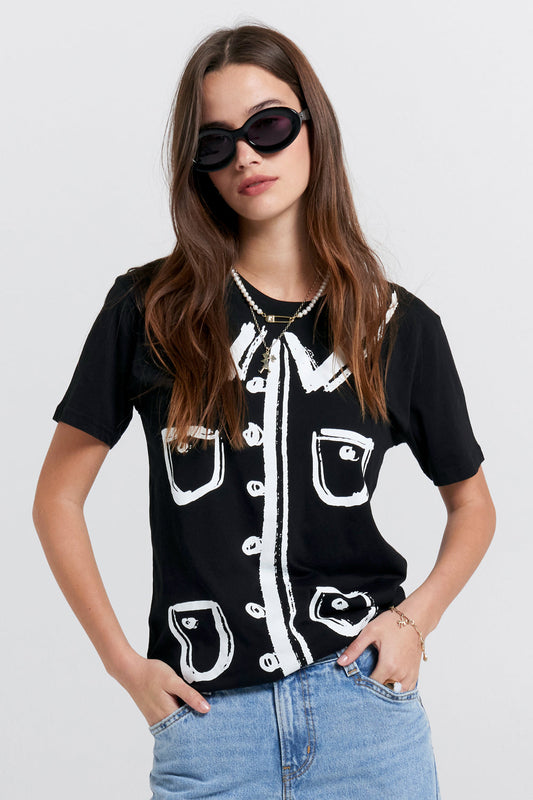 Trompe-L'oeil Jacket Organic Cotton T-Shirt Black