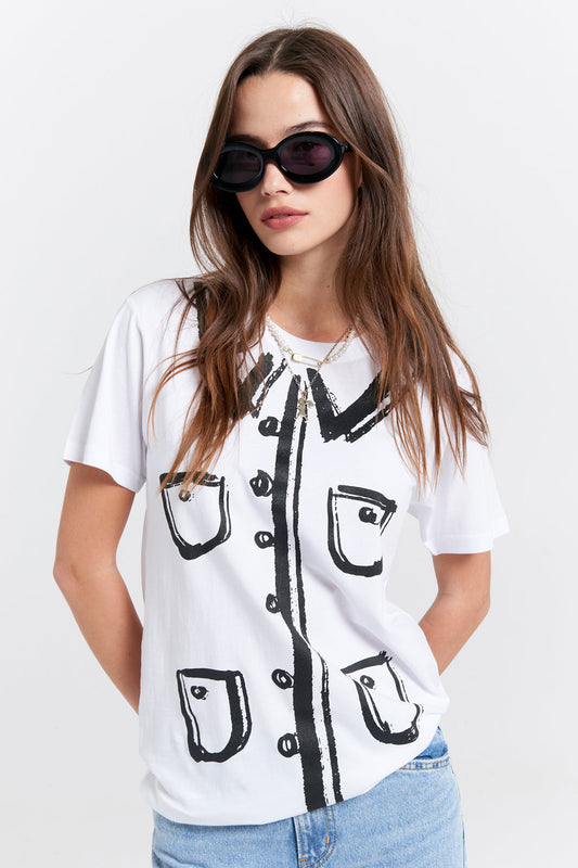 Trompe-L'oeil Jacket Organic Cotton T-Shirt White