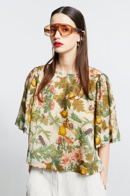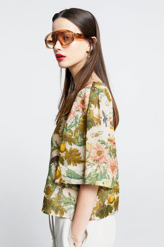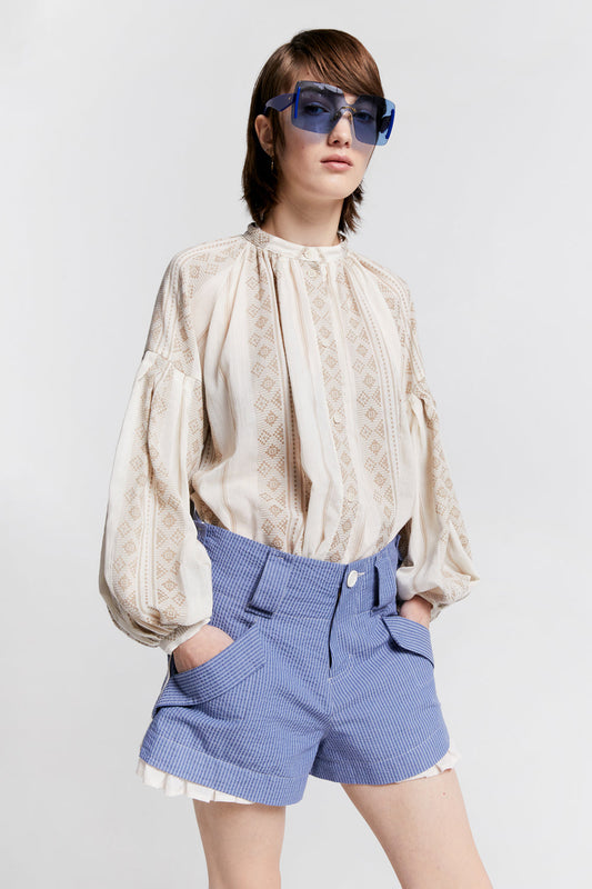 Gaia Smocked Blouse Off-White/Watermelon Smocking