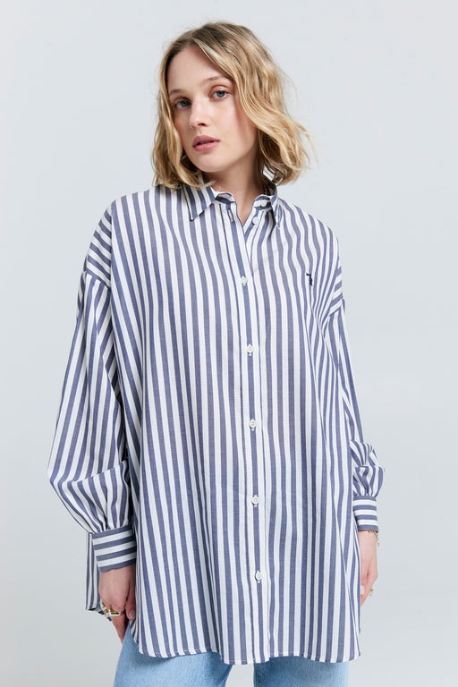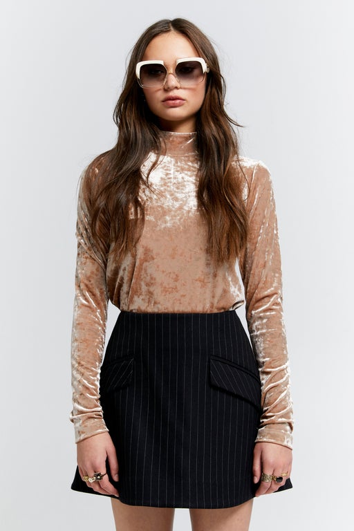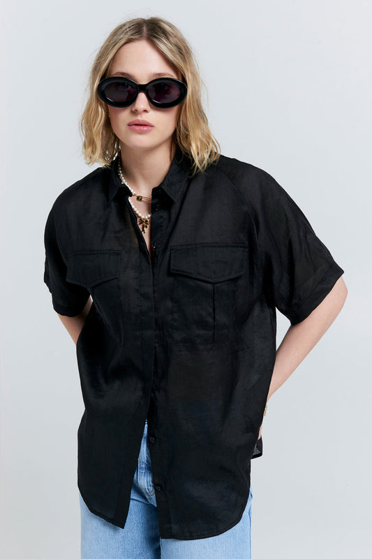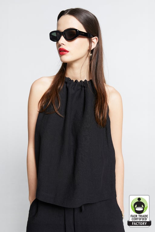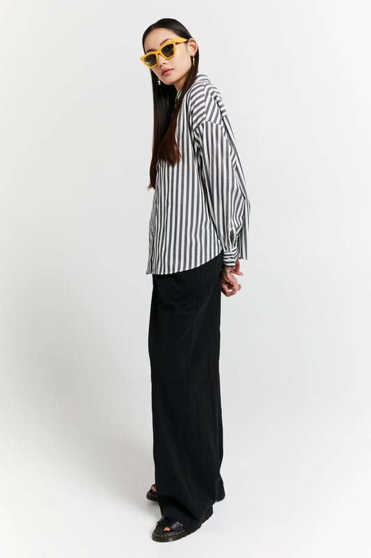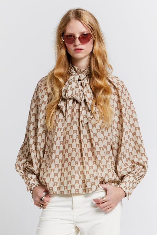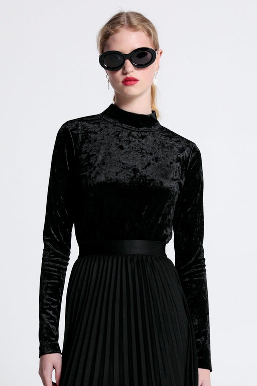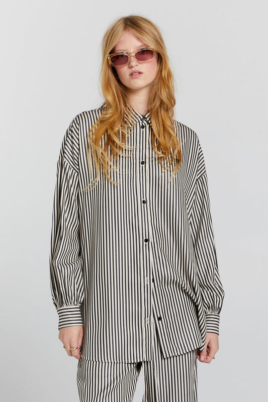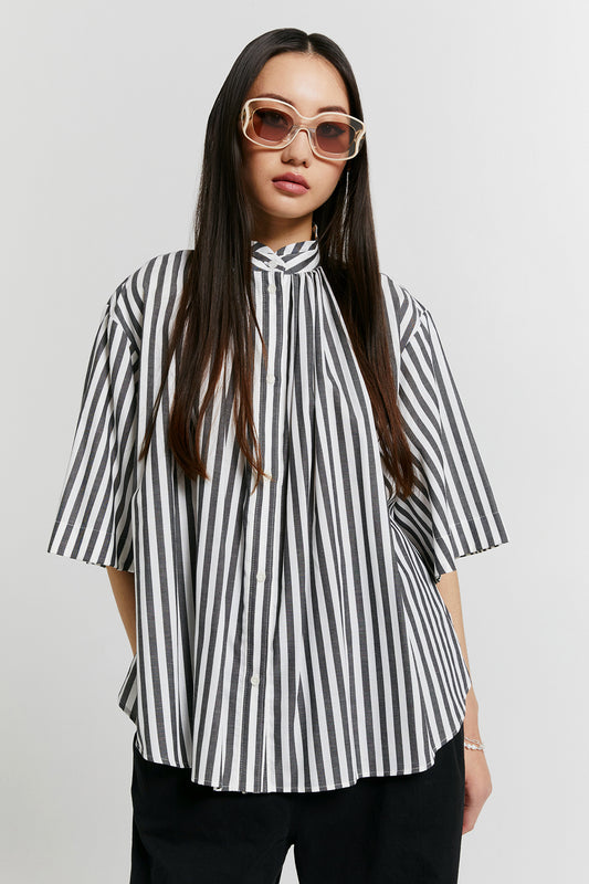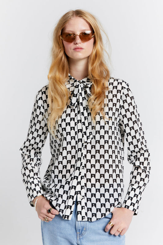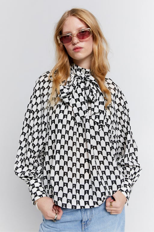 Gaia Long Sleeve Smocked Blouse Black/Off-White Smocking
