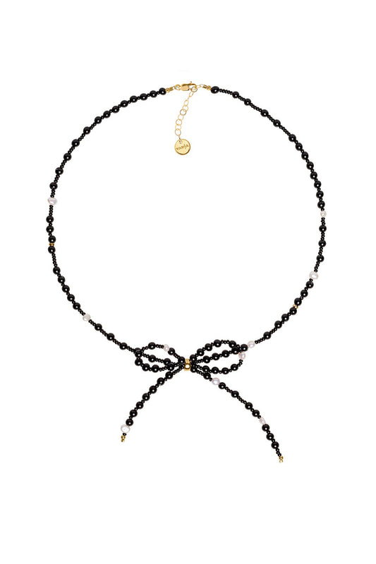 Gemstone Chip Necklace with Gold-Filled Bar Onyx