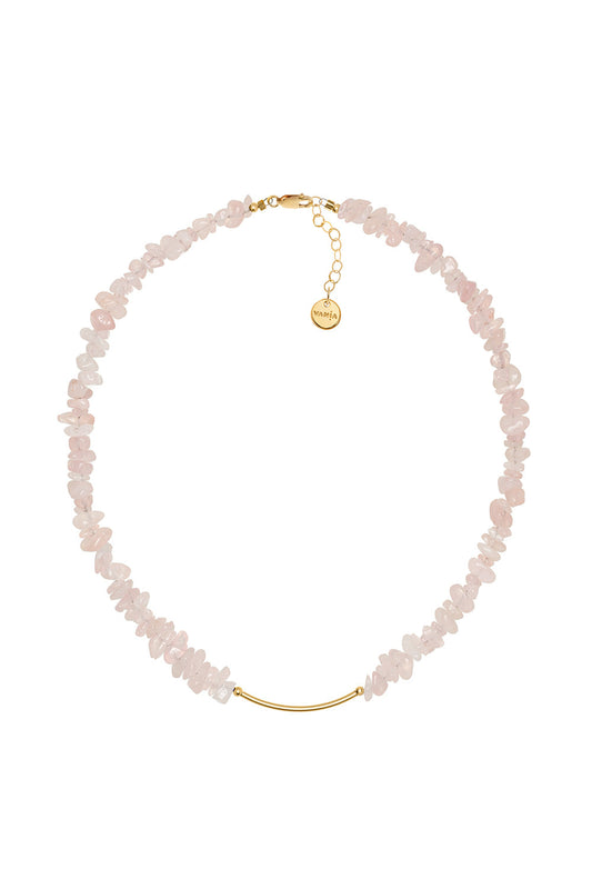 Gemstone Chip Necklace with Gold-Filled Bar Rose Quartz