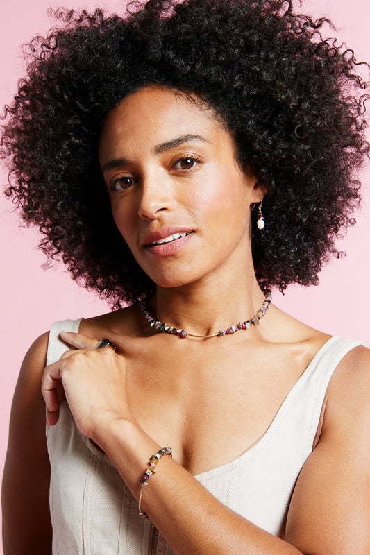 Gemstone Chip Bracelet with Gold-Filled Bar Tourmaline